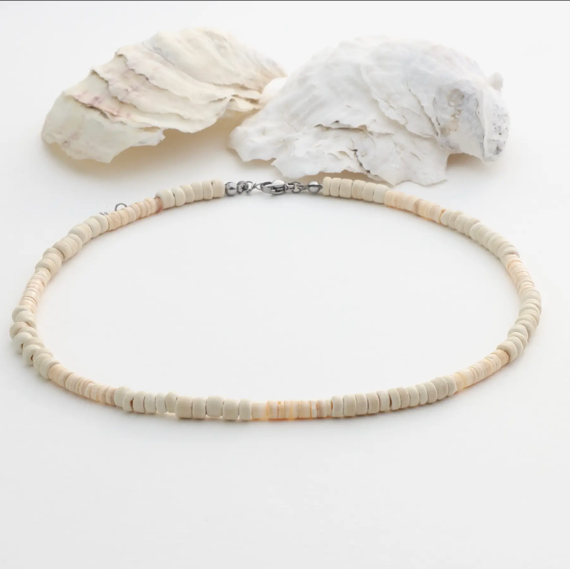 A single pearl and puka shell choker. 16" + extender. Each bracelet is adorned with classic coconut beads and our signature Cape Cod Chokers charm.