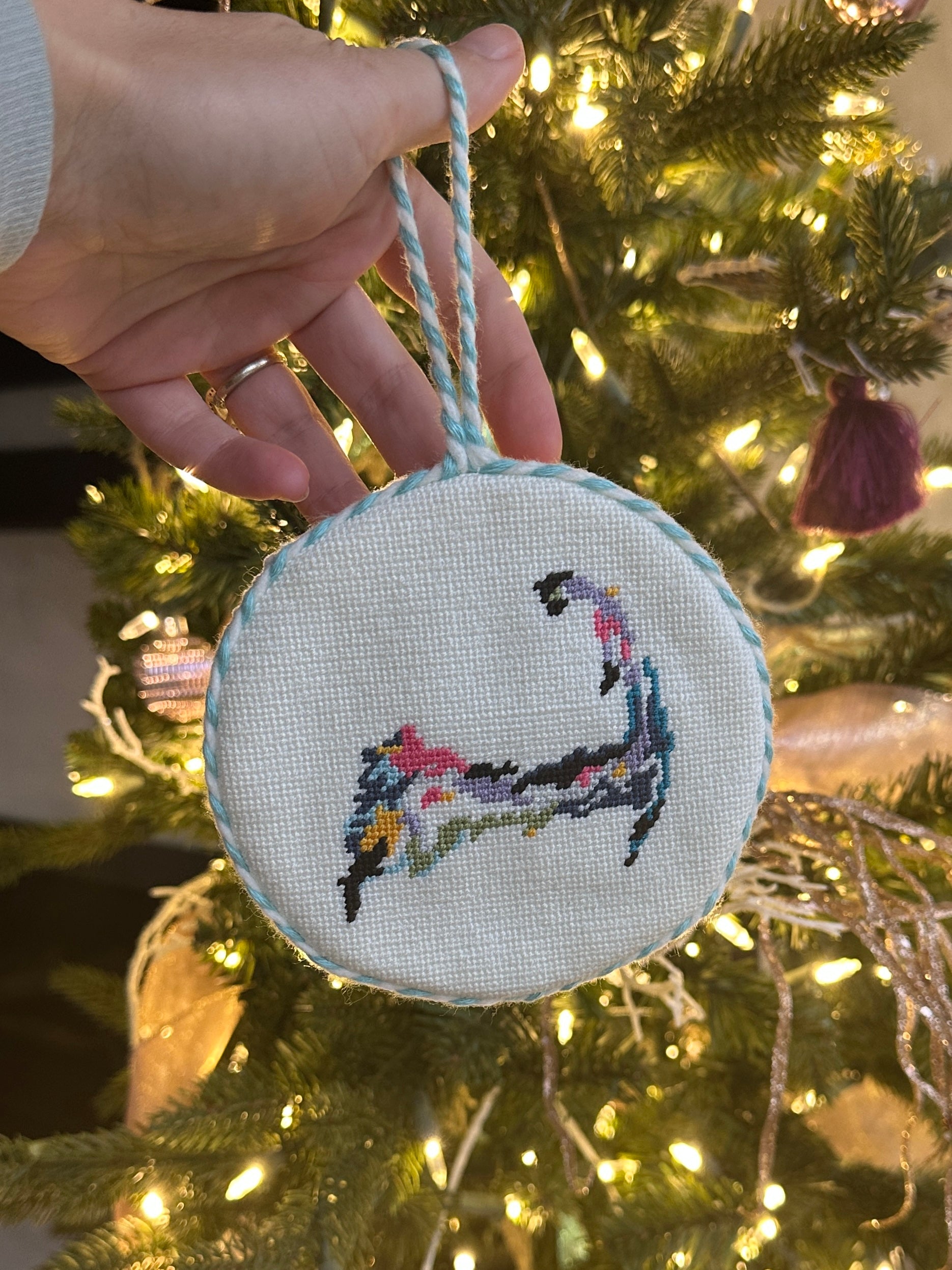 Our ornaments are custom made using cotton thread on the front and velvet on the back and embroidered "Cape Cod Chokers".