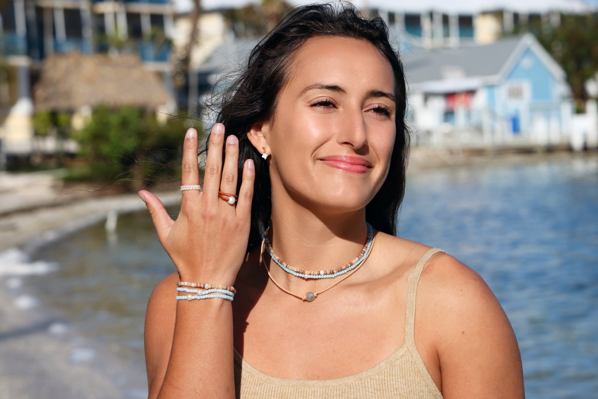 6.25-6.75β standard fit handmade stretch pearl bracelet. Each bracelet is adorned with a freshwater pearl, glass crystals, and our Cape Cod Choker charm.