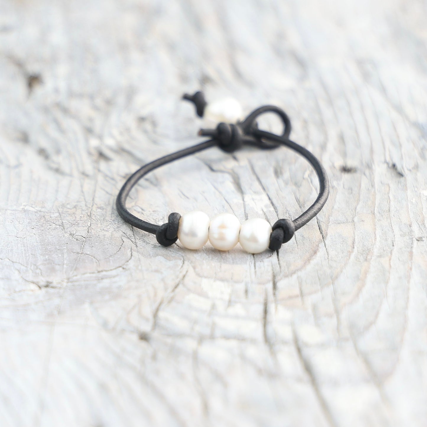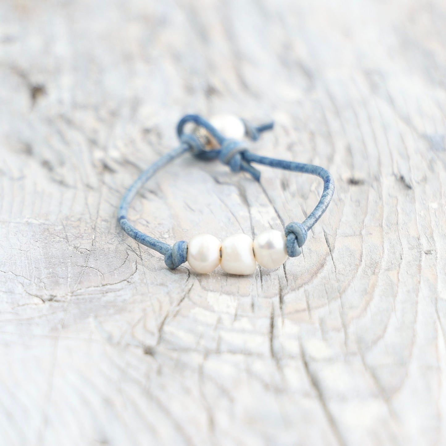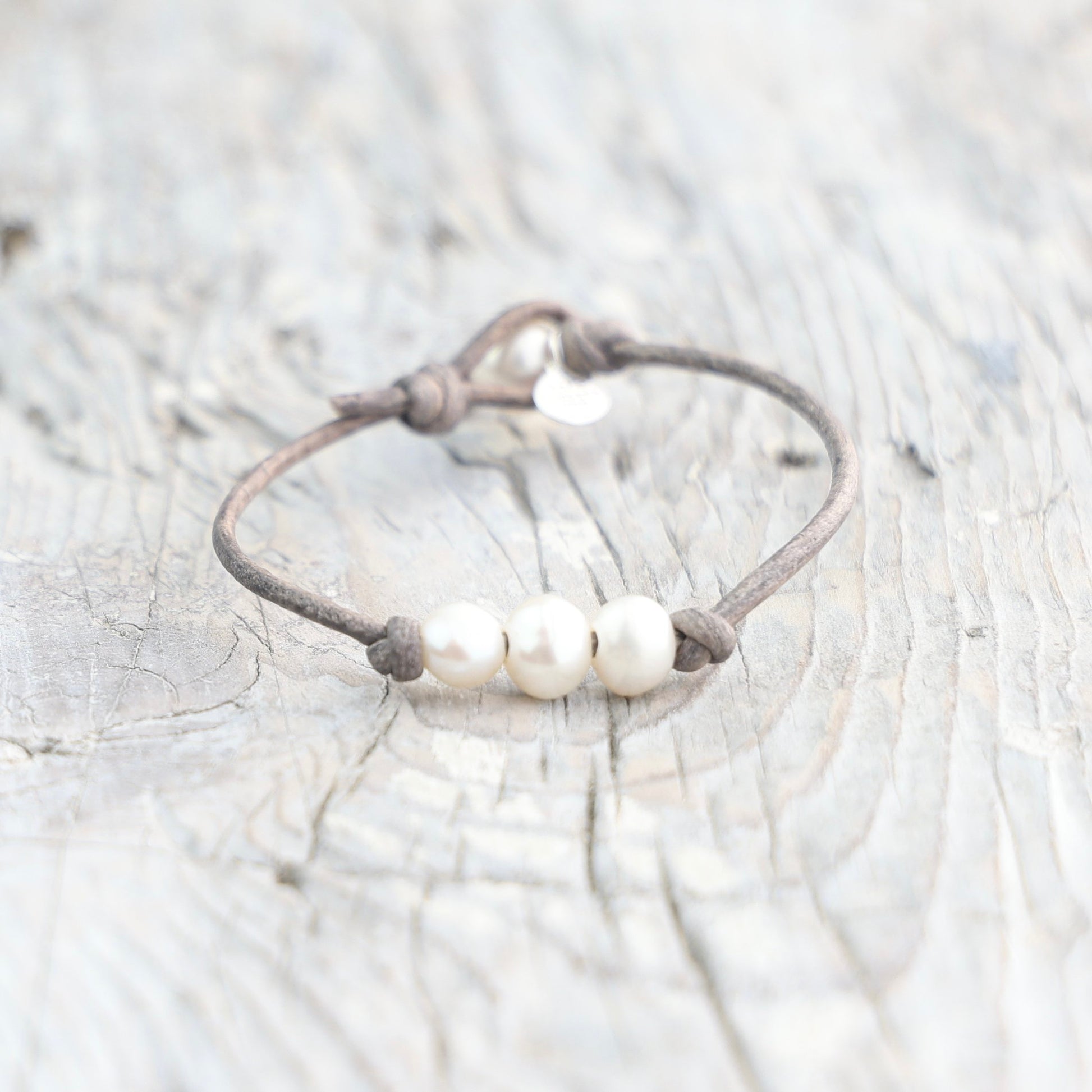 Each bracelet has three dainty freshwater pearls or genuine stones, pearl toggle closure and our signature Cape Cod charm. Average Size 6.5”
