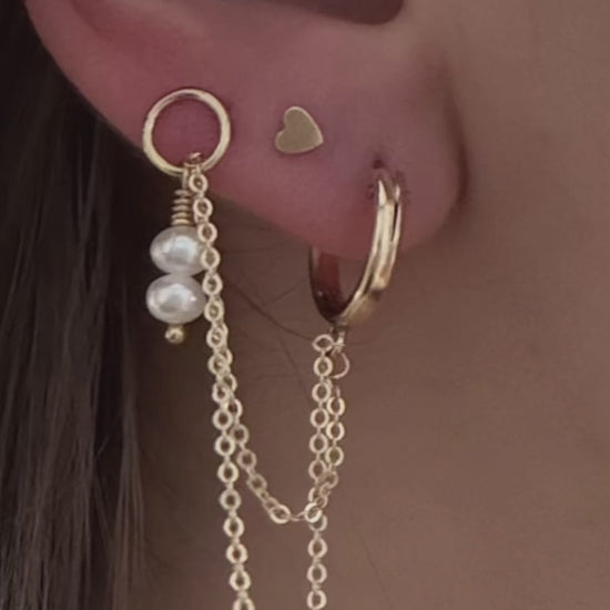 Linked Up Pearl Double Chain Double Pierced Hoops