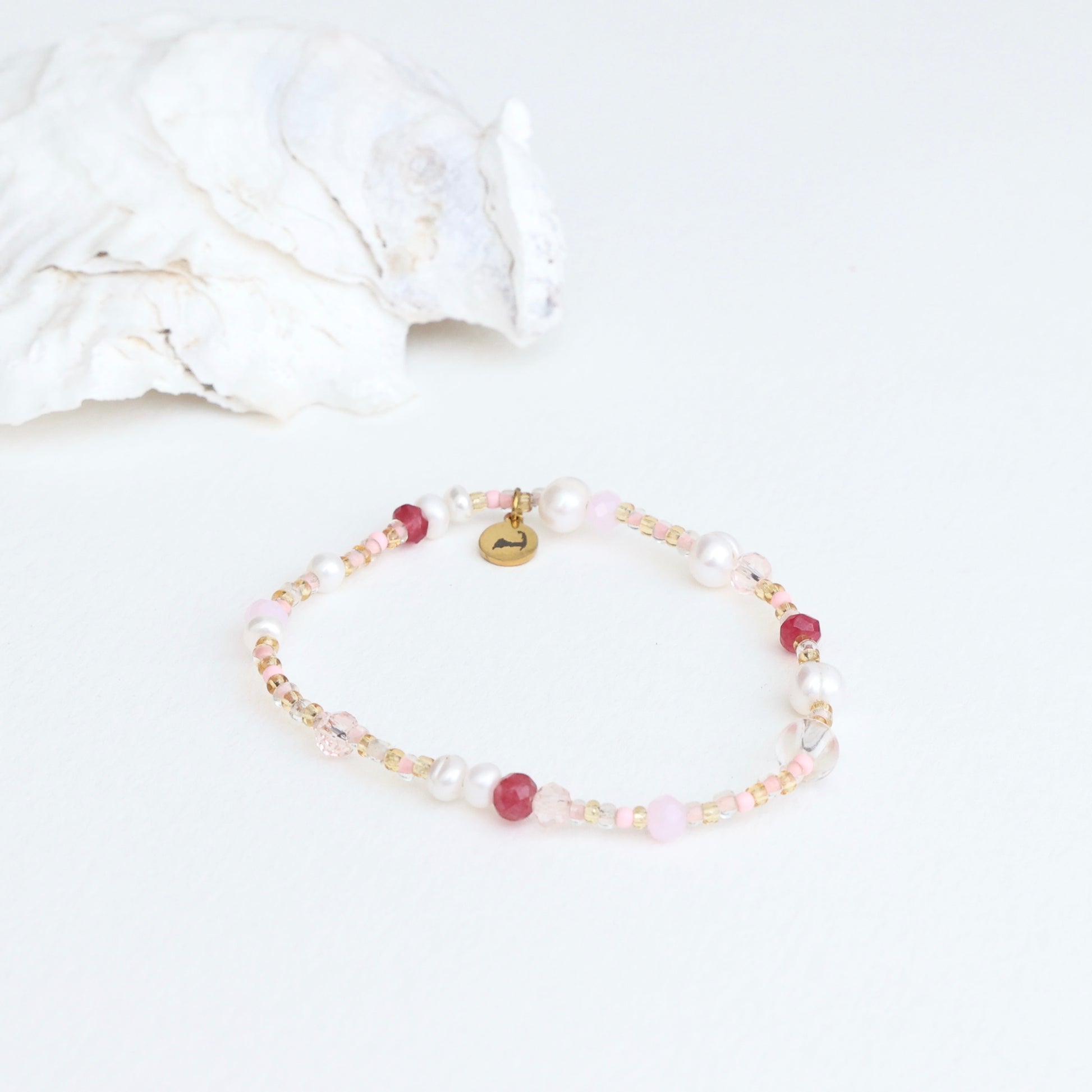 6-6.5β stretch bracelet. Freshwater pearls, mixed seed beads. Finished with our signature Cape Cod charm.