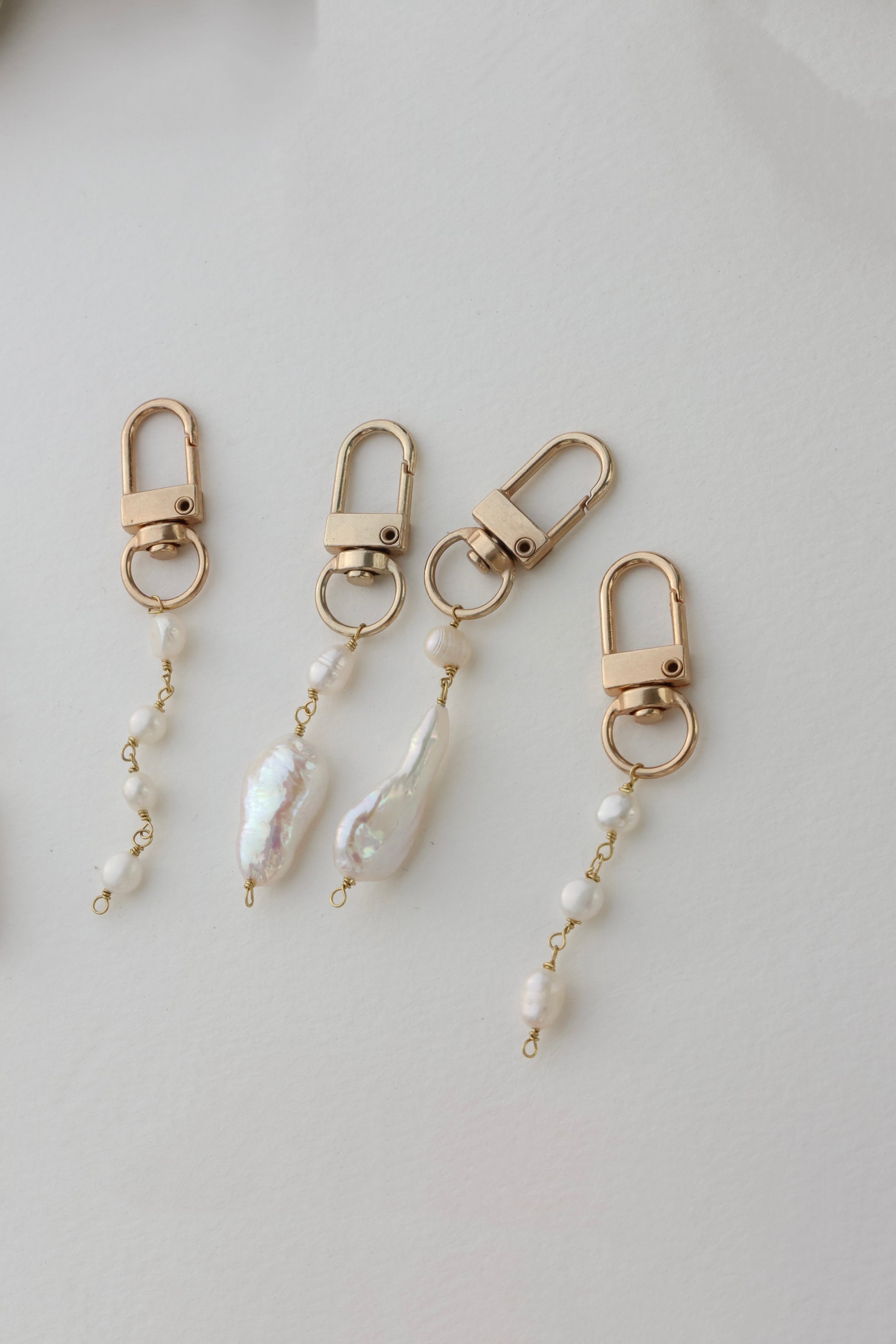 Freshwater Pearl Coastal Bag Charm Key Chain Baroque Double