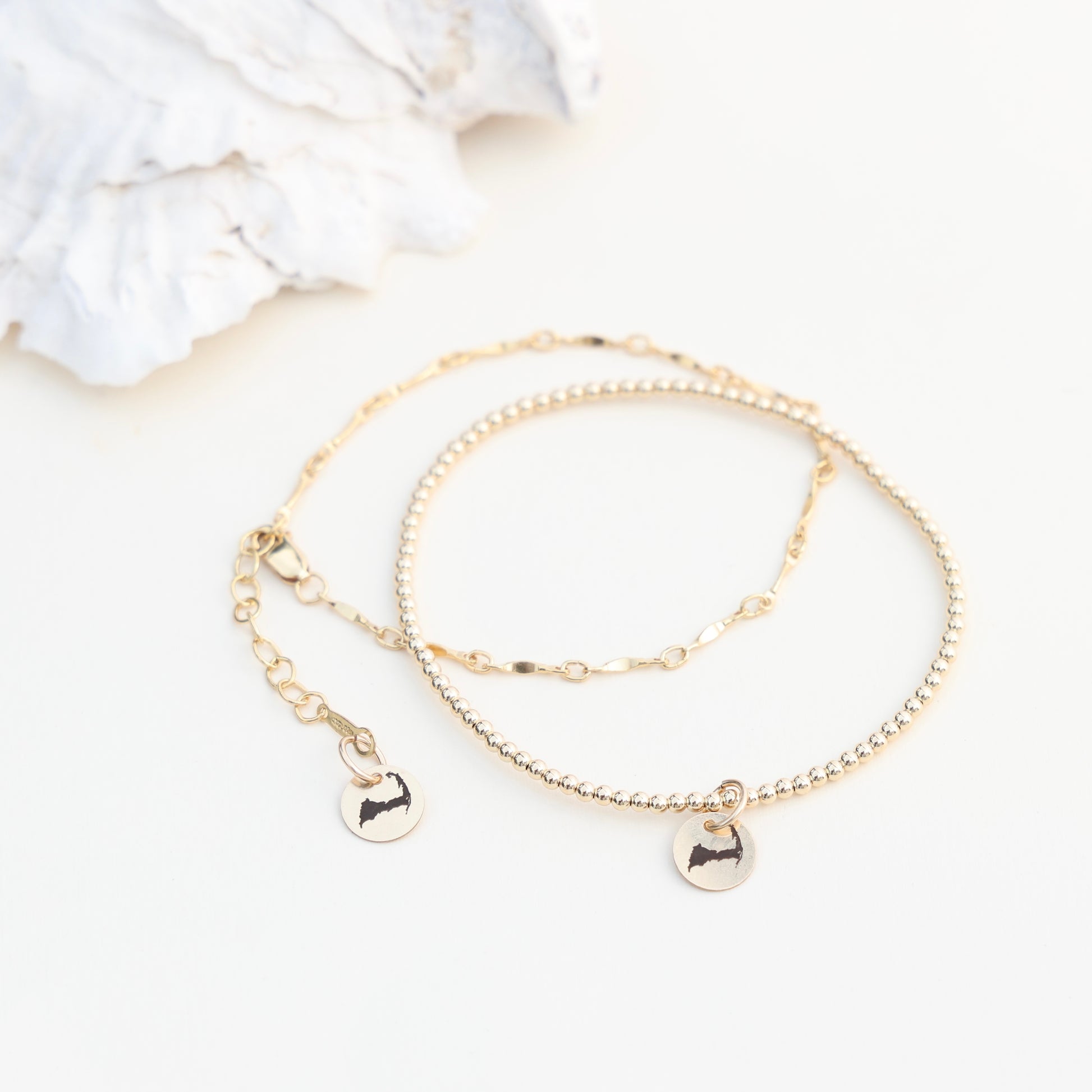 Cape Cod Bead Bracelet is perfectly dainty and can be worn alone or stacked. Cape Cod Charm included, additional charms can be added.
