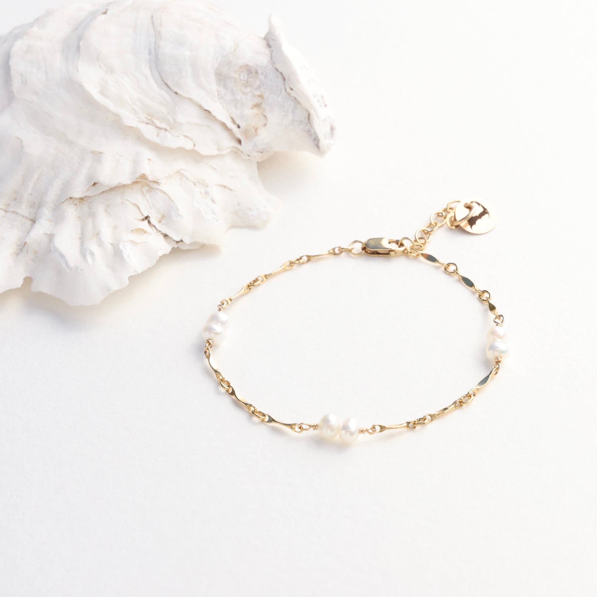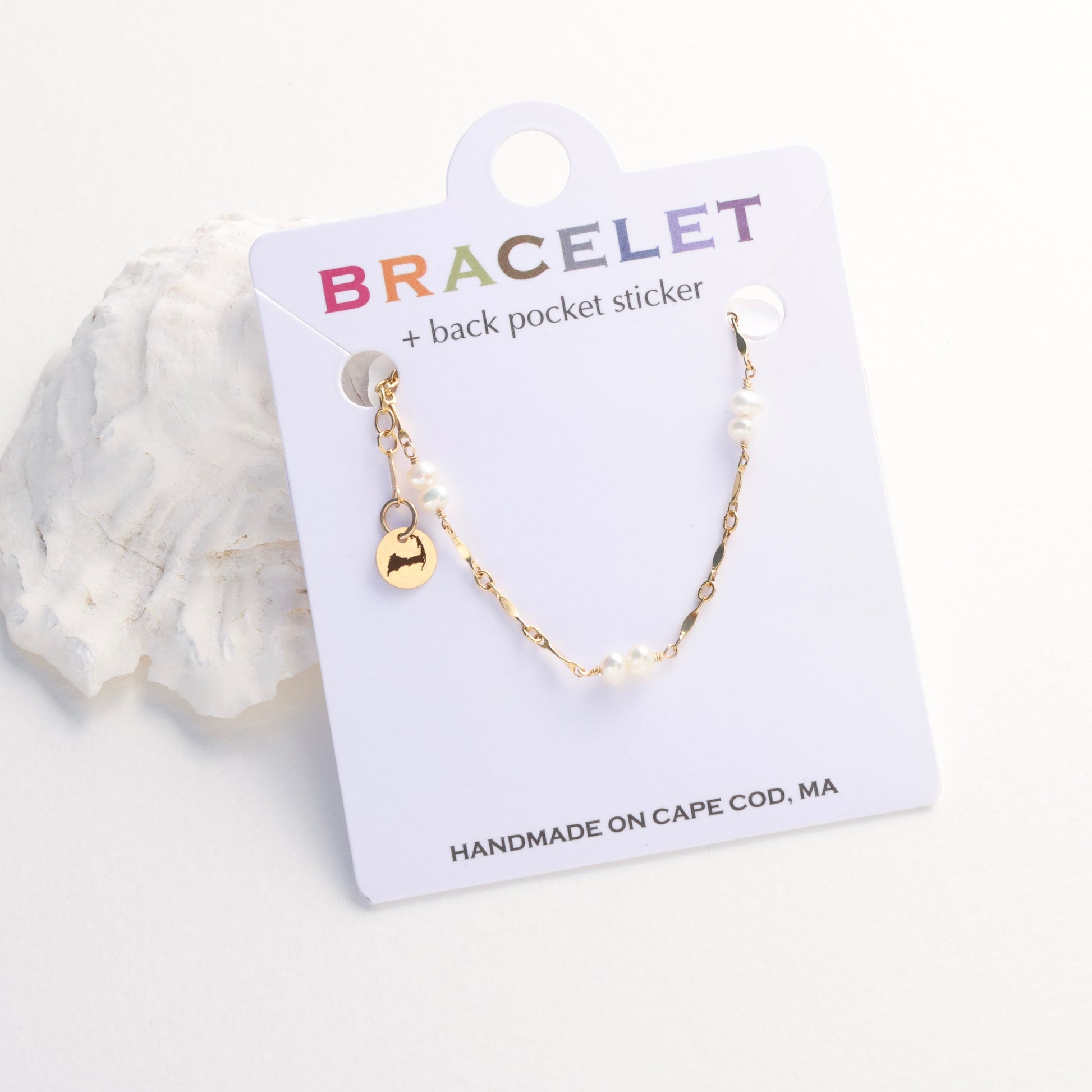 This handcrafted pearl bracelet, graced with a Cape Cod charm and is perfectly minimalist on its own or stacked and layers. 14K gold filled, AAA freshwater pearl, Hypoallergenic, water-resistant, and tarnish-proof