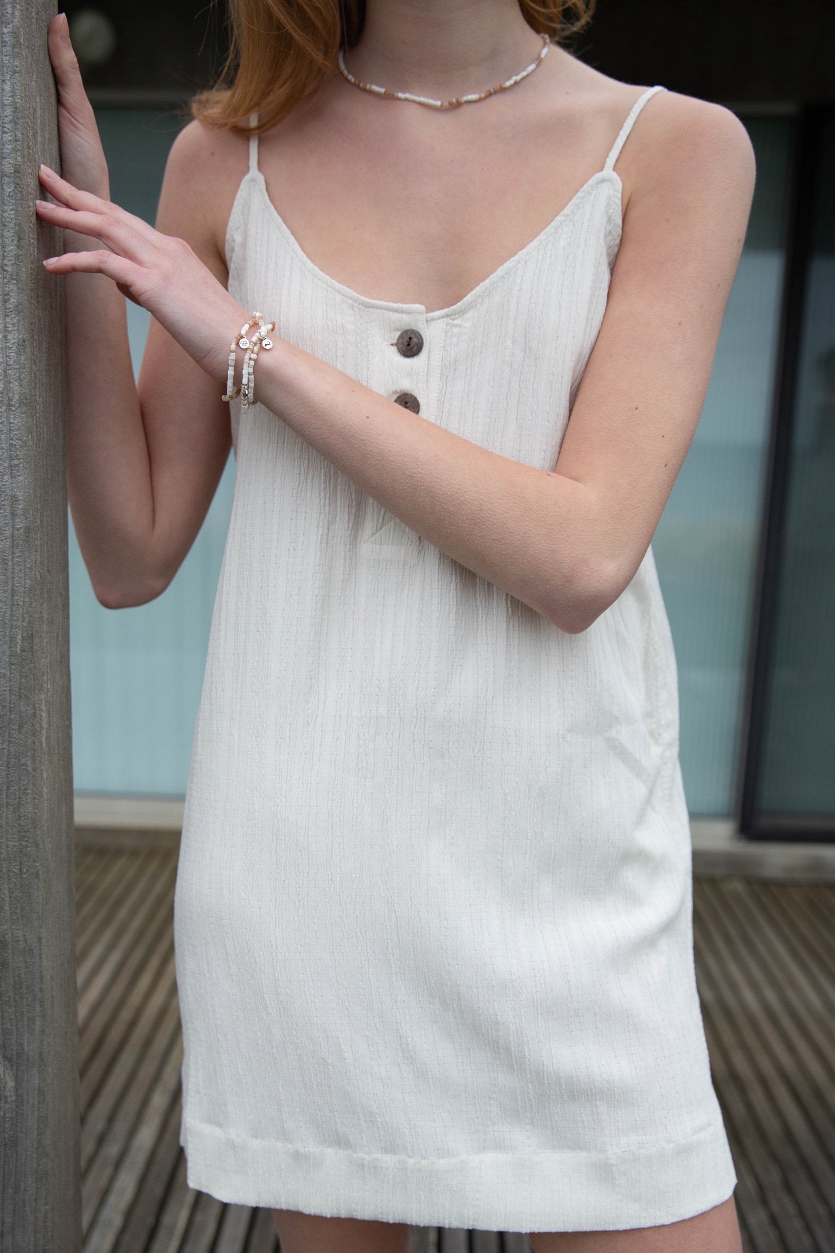 6.25"-7" stretch bracelet. Each bracelet is adorned with a variety of puka shells and our signature Cape Cod Chokers charm