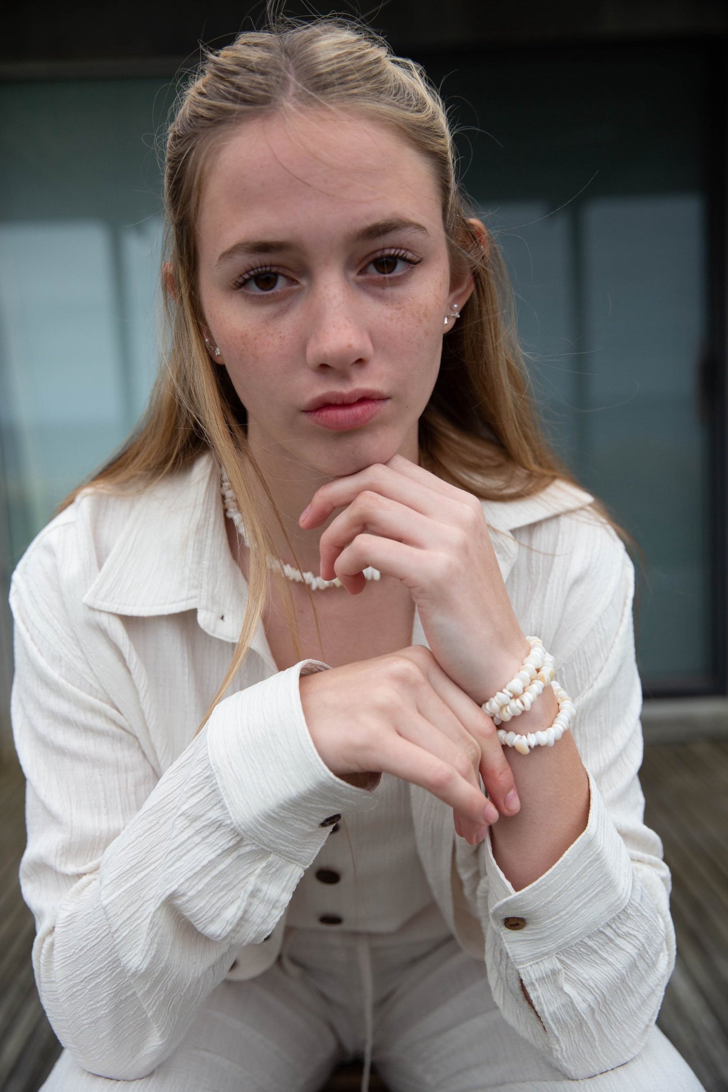 Natural Puka shells stretch bracelet with gold Cape Cod Charm. Where alone or stacked as a stamens summer piece.