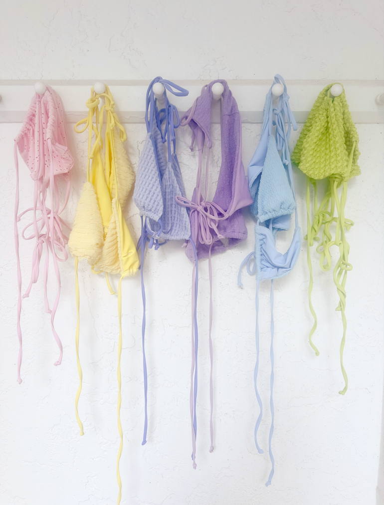 Say hello to your new favorite summer staple — our textured bikini sets are designed on Cape Cod for sun, salt, and living your beachiest life. Each set includes a matching triangle top and cheeky bottom in dreamy coastal-inspired colors and unique fabrics that elevate your swim game with effortless style. 🌊
